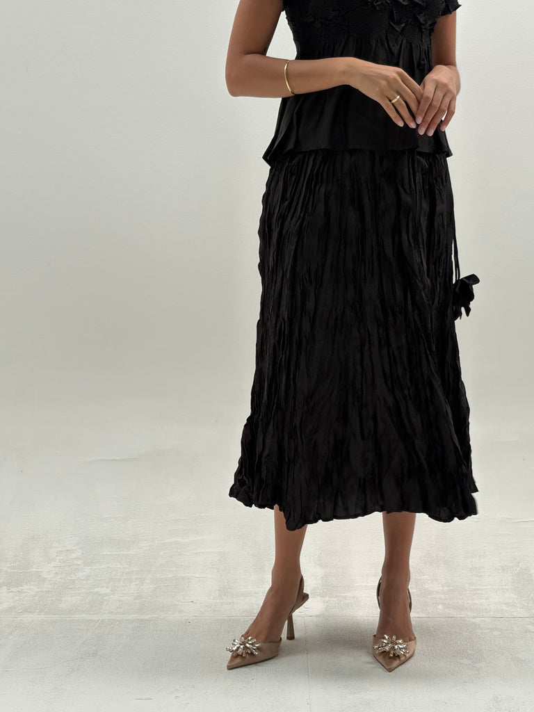 Midnight Petals Pleated Set